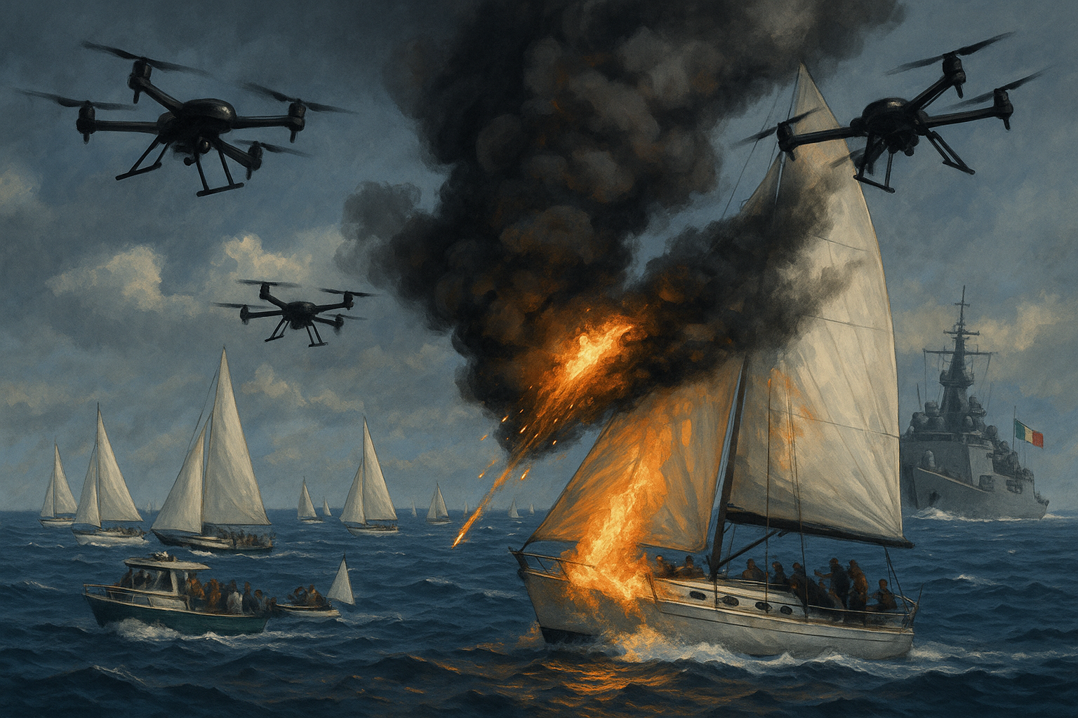 מדובר בהסלמה חמורה ביותר מול משט המחאה האירופי שנועד למחות על המשך הלחימה בעזה ועל סירובו של נתניהו להביא לסיום המלחמה הארורה. ספרד ואיטליה הודיעו רשמית כי ישגרו ספינות מלחמה להגן על חופש השייט במים הבינלאומיים של הים התיכון, זאת בעקבות סדרת תקיפות חמורות של רחפנים שהטילו רימוני הלם וחומרי בעירה על כלי שיט המשתתפים במשט.